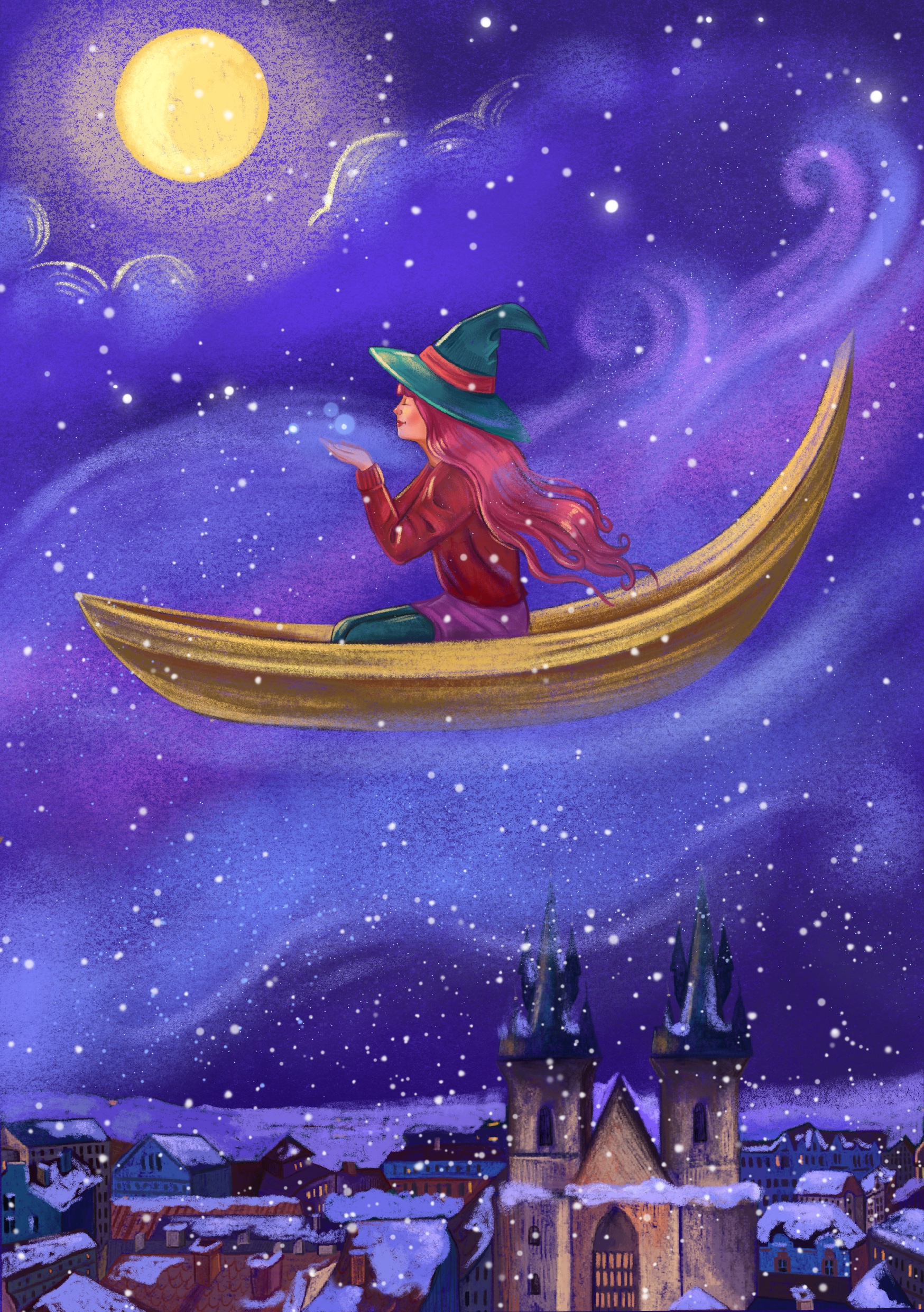 Мерно покачивается заснеженная ладья, справа от нее одна звезда загорается. Золотисто-медовая, пряная.